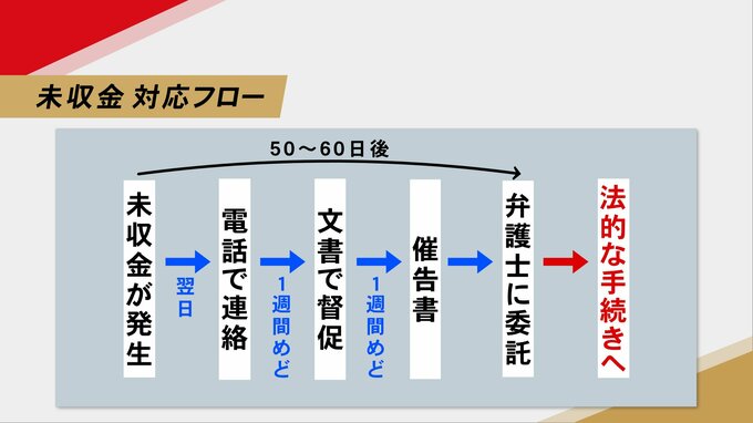 未収金の対応には段階を踏む予定ですが、最終的には弁護士に相談し、法的な手続きをとる可能性もあるということです。