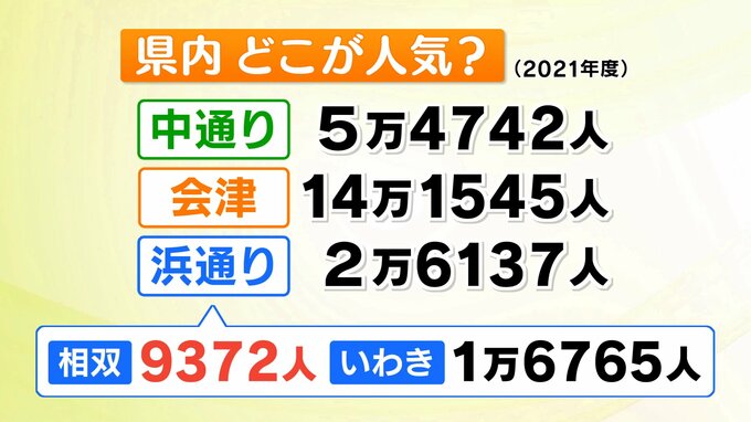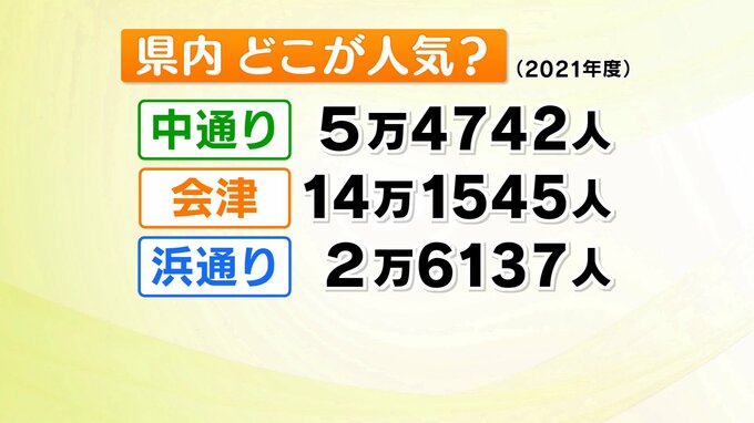 2021年度だと会津地方が最も多く、会津は歴史や自然が豊かで、スキーなどウィンタースポーツもあるので、一年中、楽しめるというところが人気だそうです。