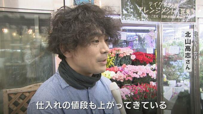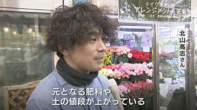 北山ナーセリー 北山高志さん:「元となる肥料や土の値段が上がってきているので、仕入れの値段もあがってきています。(Q:ギフトとしての値段も上がっている?)少しだけ上げさせていただいています」