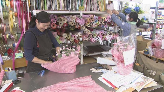 コロナが落ち着いた影響もあり、今年は発送ではなく、対面で花を渡そうと考えている人が多いそうで店頭販売の売り上げが伸びています。