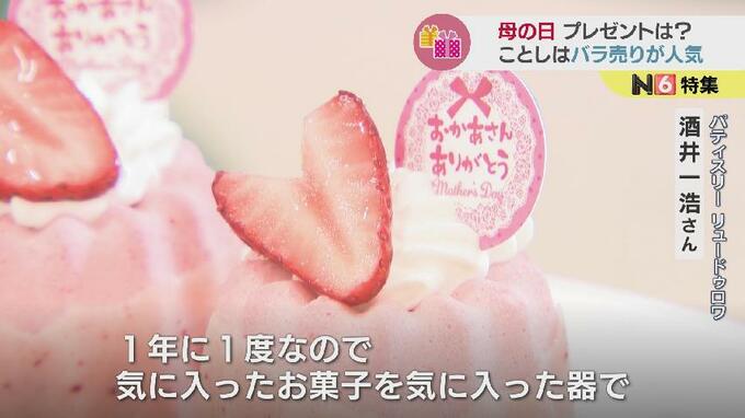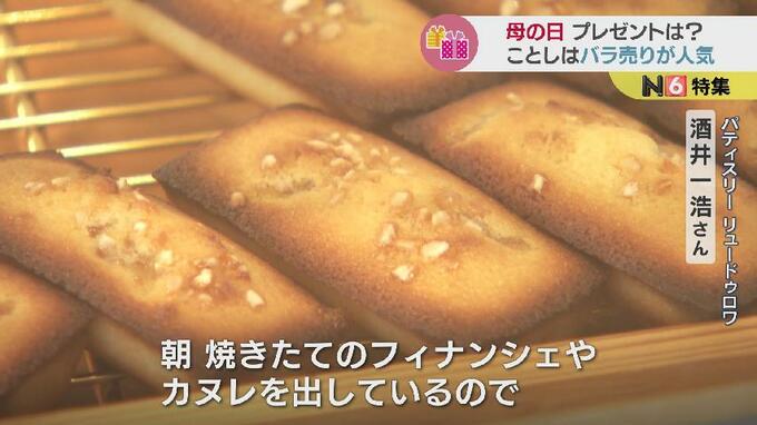 こちらの店では、物価高の影響を受け、材料費が1割ほど上がりましたが、母の日に、甘いもので癒されてほしいと今回、自宅で気軽にできる「ヌン活」を思いつきました。焼きたてのフィナンシェやカヌレ、ケーキなど、30種類以上のスイーツの中から好きなものをチョイス。価格は3000円からですが、予算に応じてパティシエおすすめのものを組み合わせることもできます。