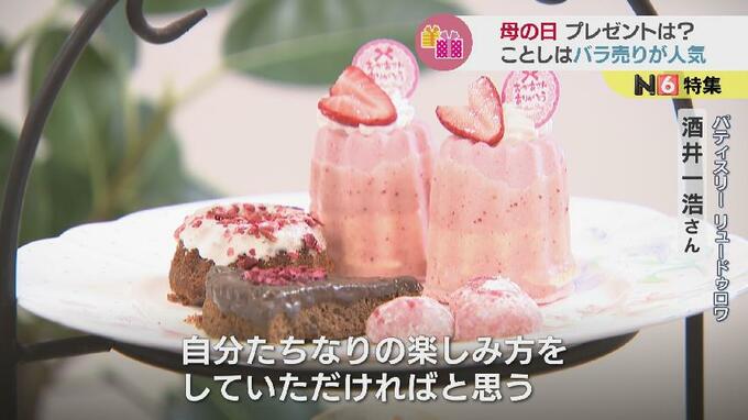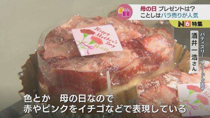 酒井さん:「色とか母の日なので、赤とかピンクとかイチゴとかで表現しています」
