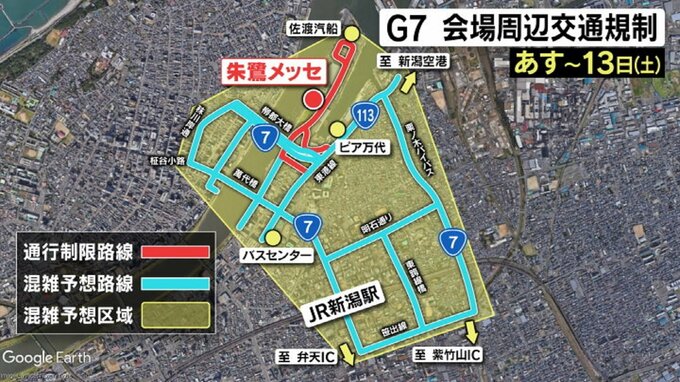 11日から新潟市の「朱鷺メッセ」で開催される『G7財務大臣・中央銀行総裁会議』にともなう、会場周辺の交通規制について詳しく見てみましょう。