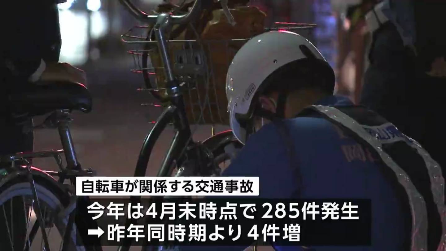 今年4月末時点で自転車が関係する交通事故は285件と、前の年の同じ時期と比べて4件増えていて、交通指導では改めて自転車の交通ルール遵守を呼びかけました。