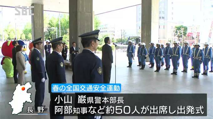 長野県庁では11日の朝、県警の小山巌(こやまいわお)本部長や阿部知事などが参加し出発式が行われました。