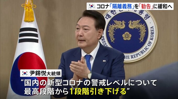 韓国政府は来月から新型コロナの感染者に対する7日間の隔離義務を勧告に切り替え、規制を緩和することを決めました。韓国 尹錫悦 大統領「医師、看護師、准看護師の方々がお越しになっています。皆さん大きな拍…
