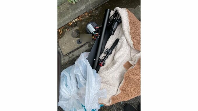 投稿では、一部のパーツがむき出しになったような電動キックボードが毛布の中から露わになっている写真が共に掲載されています。