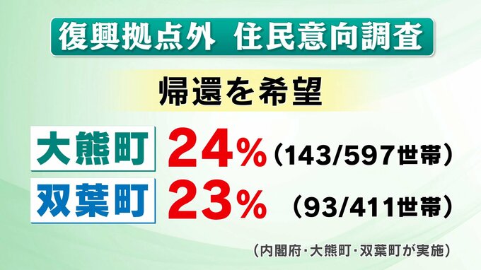 拠点外で帰還を希望しているのは、大熊町で24%、双葉町で23%という結果になりました。