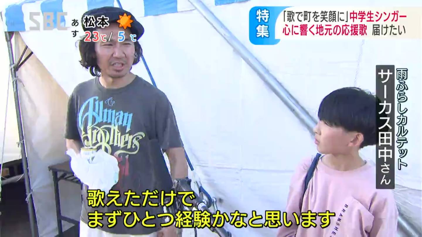 ■サーカス田中さん「大祈は小2で僕らがバルーンフェスに出てるのを見て音楽始めて、中学1年になって舞台に立っている。大祈が曲を書いてきたというので一緒にやります!」