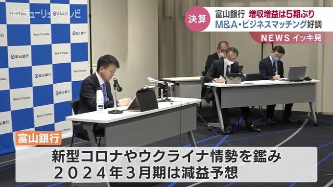 富山銀行では、今年度から初任給アップと全行員に平均3パーセントのベースアップを実施していますが、新型コロナやウクライナ情勢も鑑み、2024年3月期は減益の予想です。