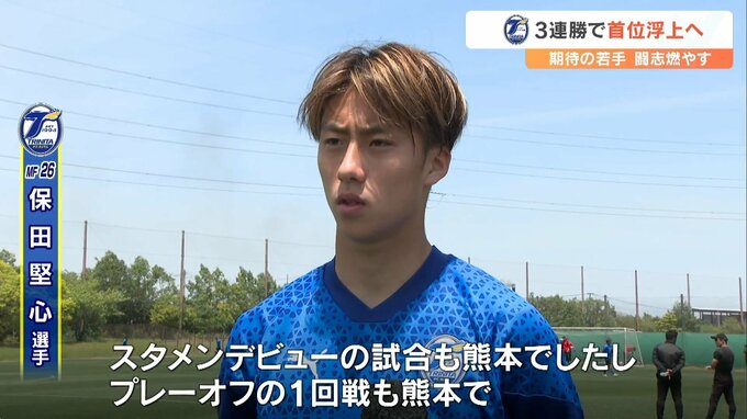 (保田堅心)「スタメンデビューの試合も熊本でしたし、プレーオフの1回戦も熊本で思いのあるクラブというか手ごわいイメージはあります」