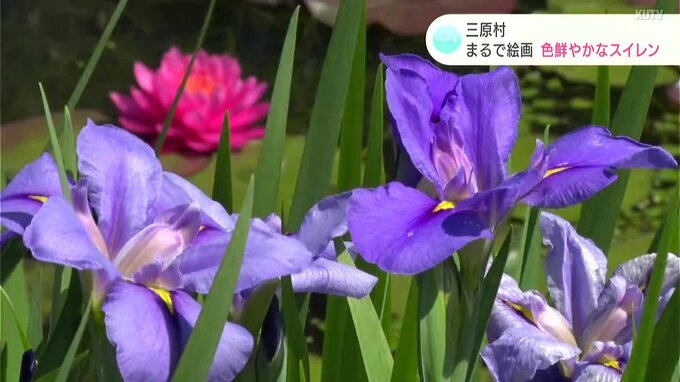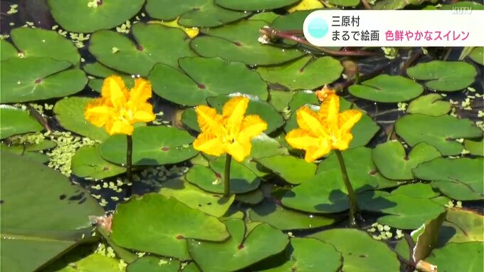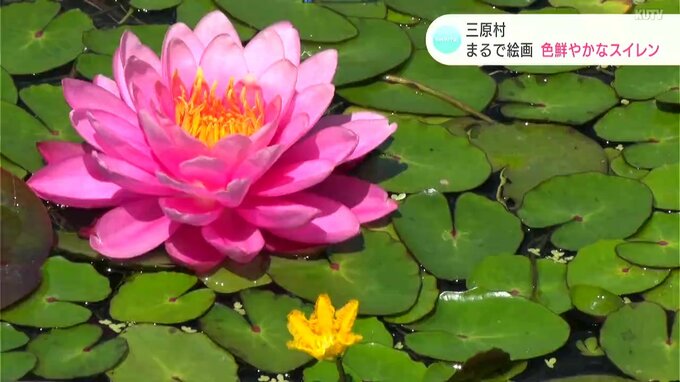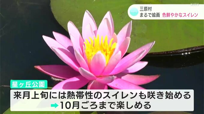 三原村宮ノ川の星ヶ丘公園です。訪れる人たちに花を楽しんでもらおうと、地元の住民たちが園内の手入れをして草花や木など多彩な植物を育てています。池には温帯性と熱帯性、合わせて500株ほどのスイレンが植えられていて、11日の午前中、温帯性のスイレンが花を咲かせ水面を彩っていました。