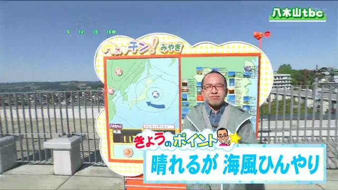 5月12日金曜日、宮城の30秒天気です。tbc気象台、星野誠気象予報士がお伝えします。「きょうで4日連続の晴れ。海から冷たい風が吹くため、最高気温は沿岸を中心に平年より低めで、日中でも日陰だとひんやり感じら…