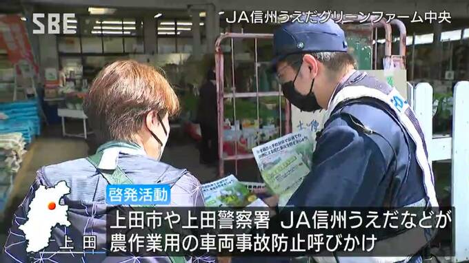 啓発は上田市内でおととし(2021年)農業用車両に絡んだ死亡事故が2件発生してから、繁忙期の春に毎年行われていて、長野県内では今年も、農作業用の車両に絡む死亡事故が4件、重傷事故が2件、4月までに発生しています。