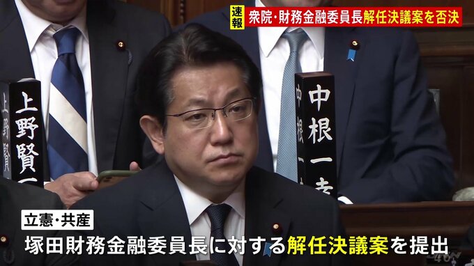 防衛費増額の財源を確保するための法案をめぐり、立憲民主党などから提出された衆議院・財務金融委員長に対する解任決議案が、与党や一部の野党の反対多数で否決されました。立憲民主党 階猛衆院議員「(復興特別…