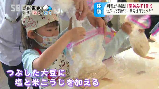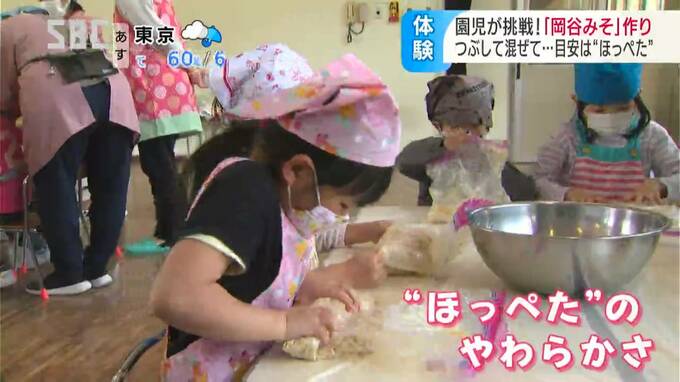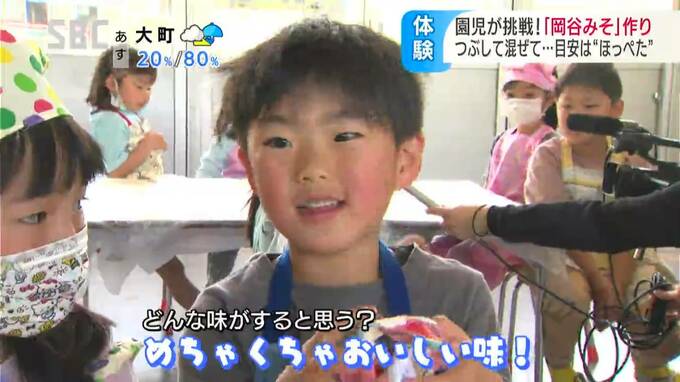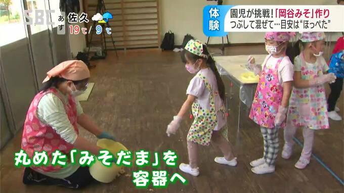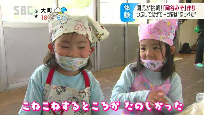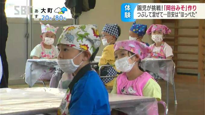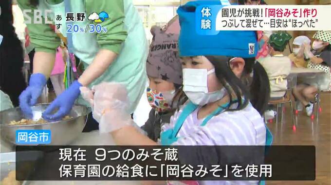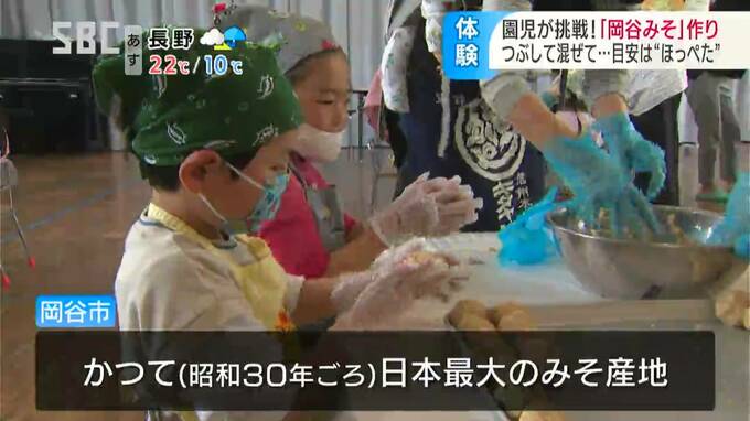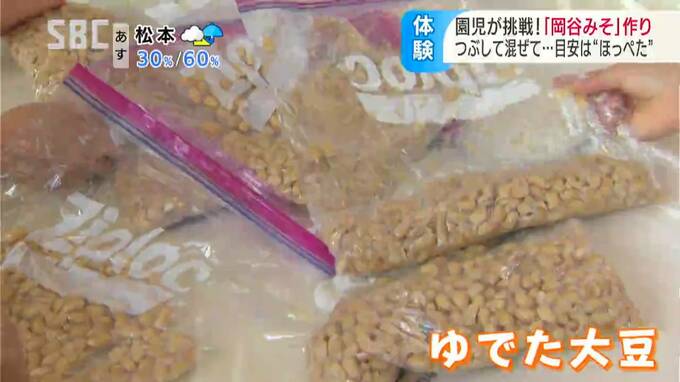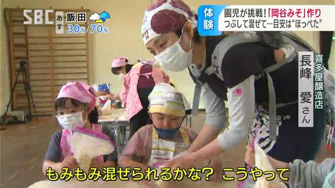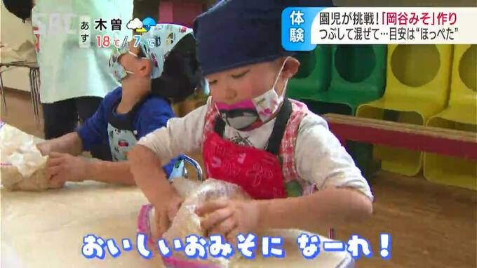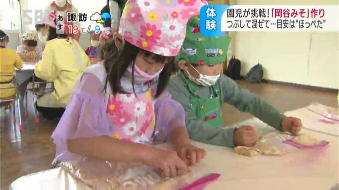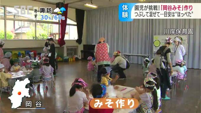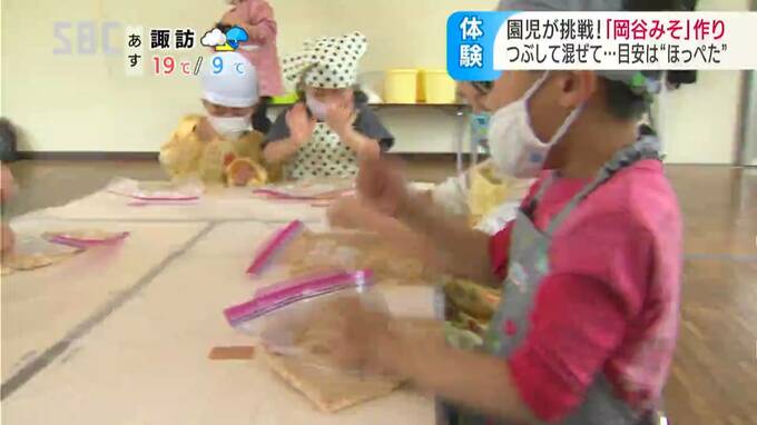 子どもたちに地域の魅力に触れてもらおうと、岡谷市の保育園でみそづくり体験が行われました。