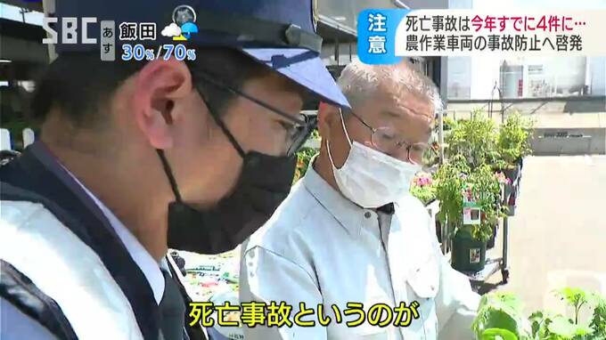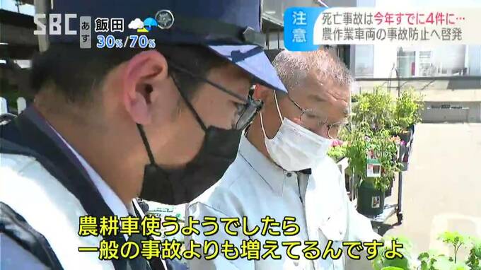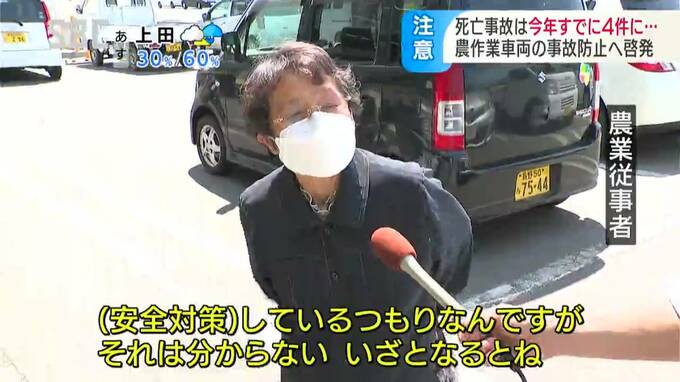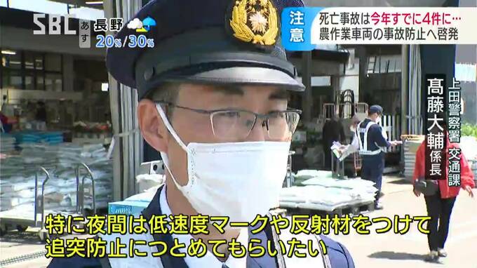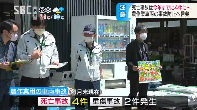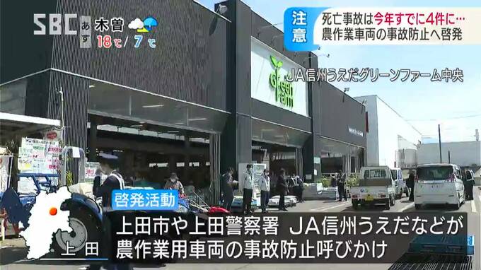 啓発は上田市内で2021年、農業用車両に絡んだ死亡事故が2件発生したことから繁忙期の春に毎年行われていて、長野県内では今年も死亡事故が4件、重傷事故が2件、4月までに発生しています。