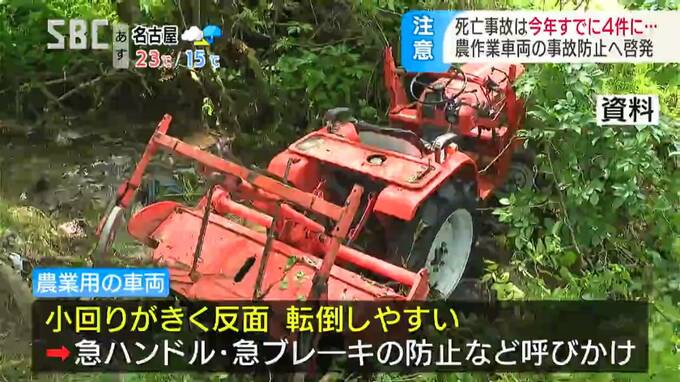 農業用の車両は小回りがきく半面、バランスを崩して転倒しやすいということで、警察は急ハンドルや急ブレーキを避けることや、路面や畑の状態にあった運転を呼びかけています。