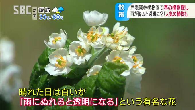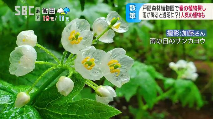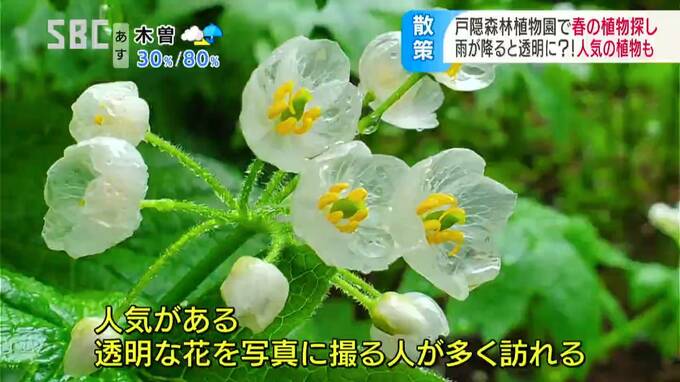 (加藤さん)「晴れた日は白いが雨に濡れると透明になるという有名な花です」