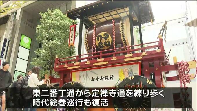 仙台・青葉まつりが今月20日に開幕するのを前に「山鉾(やまぼこ)」が商店街にお目見えし、訪れる人の目を楽しませています。青葉区一番町のアーケードに、お目見えしたのは、政宗公山鉾や囃子山鉾など10基の山鉾…