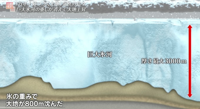 この上昇現象は、氷河期が終わって一帯を覆っていた巨大な氷河が消え、その重みで沈み込んでいた大地が解放され「リバウンド」しているためと考えられています。大地のリバウンドといわれてもにわかには信じがたいでしょうが、データ的にはハイコーストにあった氷河は最大で厚さ3000メートルもあり、1平方メートルあたり2700トンもの加重がかかり、それによって大地は800メートルも沈み込んでいたと推定されています。その重みがなくなったのは氷河期の終わった1万年前。以来、ここの地面は少しずつ上昇を続けているのです。
