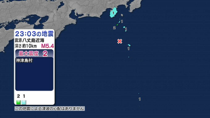 気象庁によりますと、この地震の震源の深さは約10km。地震の規模を示すマグニチュードは5.4と推定されます。