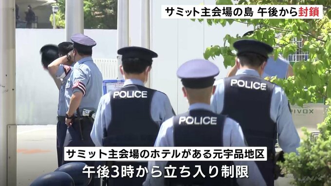 G7サミットの主な会場がある広島市の島・元宇品地区では、この後、午後3時から立ち入り制限が始まる予定です。地区に入ることができるのは、住民や職場がある人などに限られ、事前に申請した「識別証」や「車両証…