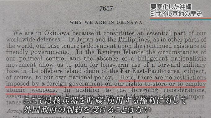 沖縄の基地はアメリカの極東戦略の拠点だと明示したアメリカの文書には、次のように記されています。