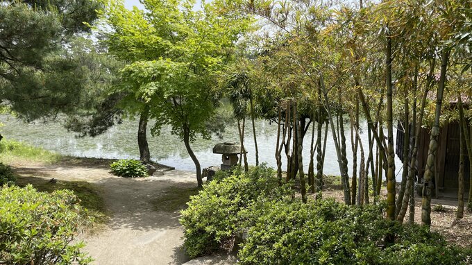 また二宮家には、文化庁の登録有形文化財に指定されている建物があるほか、「静勝園」と名づけられている日本庭園もあります。隣にある「弁天潟」を借景にしていて、見事な風景が広がっています。