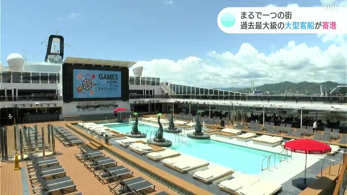 高知新港に大型客船が寄港しました。コロナ禍前を含めても最大のトン数を誇る船で、まるで一つの街のようです。今年3月以降、外国客船の寄港が活発化していて、再び盛り上がりを見せています。