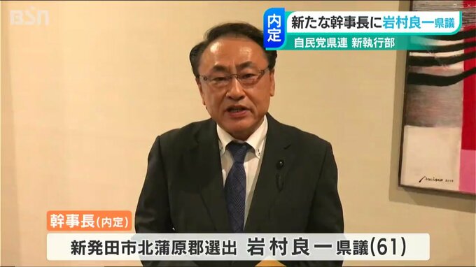 県連運営の要となる幹事長には、新発田市北蒲原郡選出で当選7回の岩村良一県議を充てる案を固めました。