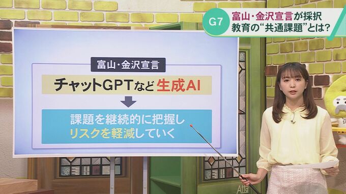 日本で初めて、2つの都市での共同開催となった「G7富山・金沢教育大臣会合」。ウクライナ侵攻による国際交流の停滞、チャットGPTなど生成AIを含むデジタル技術が与える影響など、アフターコロナの時代に共通で抱える教育システムの課題について話し合われました。