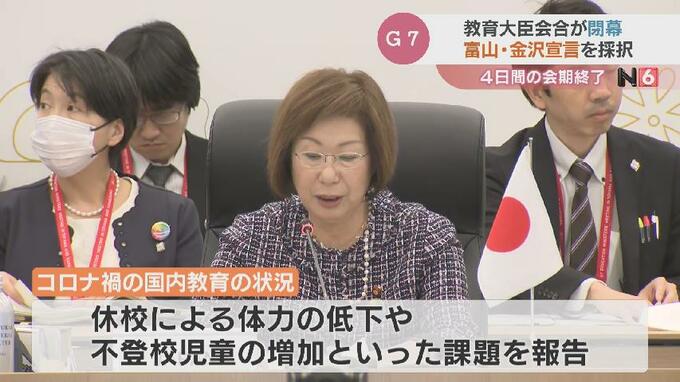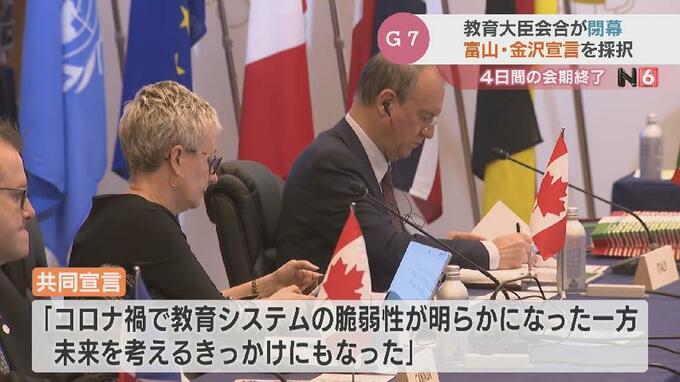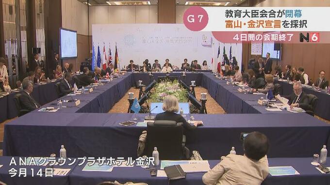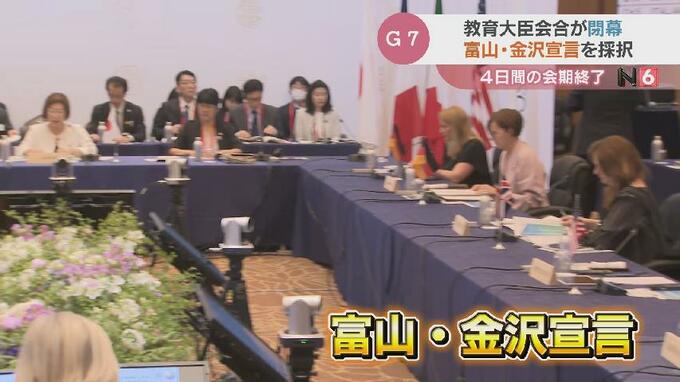 G7富山・金沢教育大臣会合が4日間の会期を終えて15日閉幕しました。各国の大臣たちは県内の中学生たちと意見交換するなどしその成果として学生たちの交流拡大などを盛り込んだ「富山・金沢宣言」を採択しました。