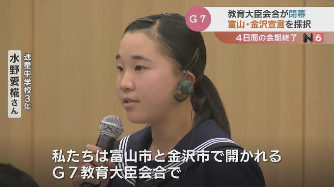 速星中学校3年生:「私たちは富山市と金沢市で開かれるG7教育大臣会合でどんな未来を描きたいか考える機会を得ました」