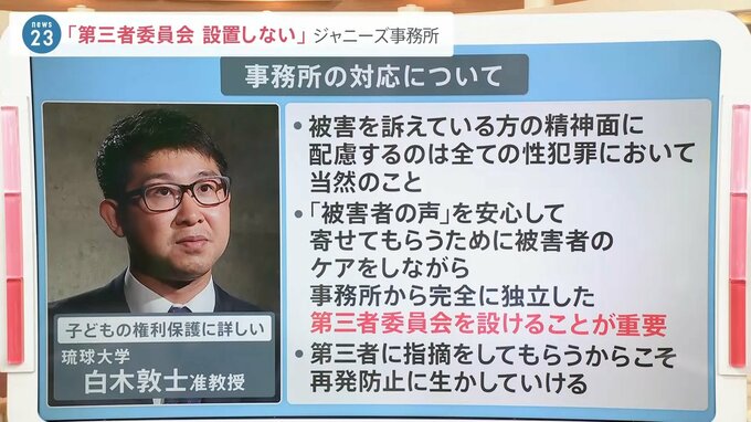 「こうした事務所側の対応について、白木准教授はこう話しています」
