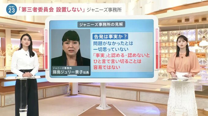 「ガバナンスに失敗してきた企業が『今後は私たちのなかで対応できます』と一方的に見解を発表しても、なかなか信じることはできません。個人(ジャニー喜多川氏)が死亡しているということは理由になりませんし、事実認定ができないかというと、そうではないわけですよね。