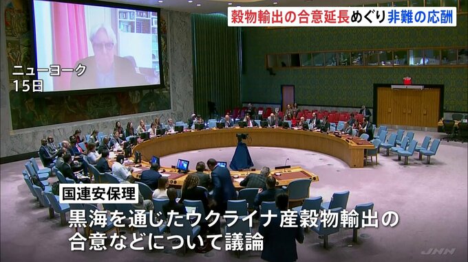 国連の安全保障理事会はウクライナ情勢に関する会合を開きましたが、穀物輸出の合意延長をめぐって、非難の応酬となりました。15日に開かれた会合では、ロシアが今月18日の期限切れを主張する黒海を通じたウクライ…