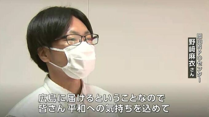 (岡山NPOセンター 野﨑麻衣さん)「広島に届けるということなので、皆さん平和への気持ちを込めていろんな所からこの思いを届けているんだということを感じてもらえたら」