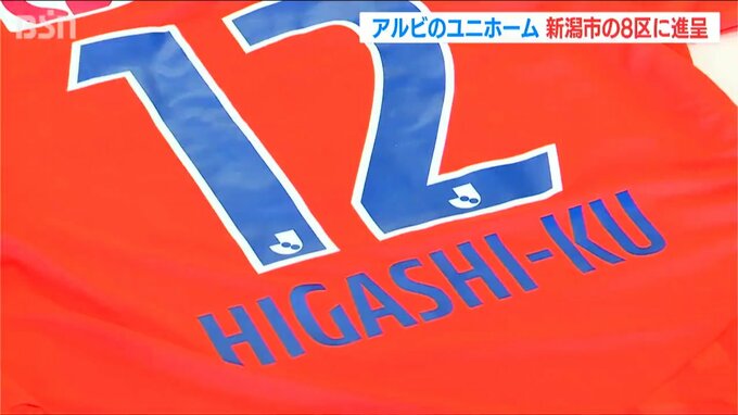 新潟県内の「全市町村で一体となって新潟を盛り上げていってほしい」と、サッカーJ1リーグの『アルビレックス新潟』が16日、新潟市の8つの区に今シーズンのユニフォームを贈りました。ユニフォームには、12番目の…