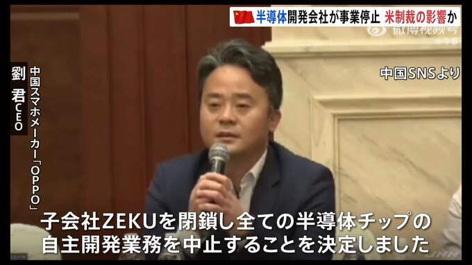 中国のスマートフォンメーカー大手「OPPO」が、半導体を開発する子会社の業務を停止しました。アメリカなどによる半導体関連の対中輸出規制の影響があるものとみられます。中国スマホ大手「OPPO」 劉君CEO「子会社…