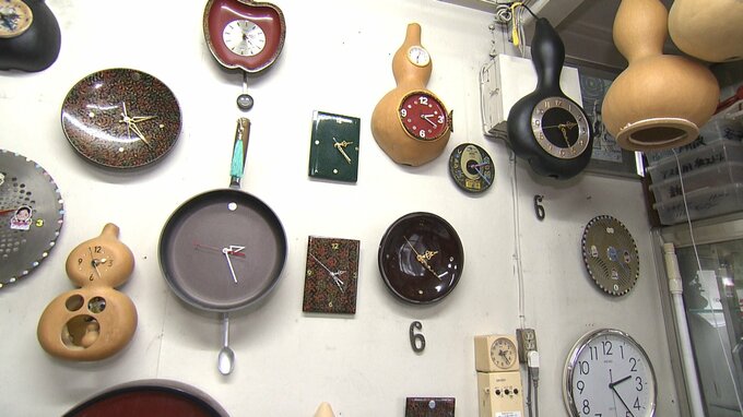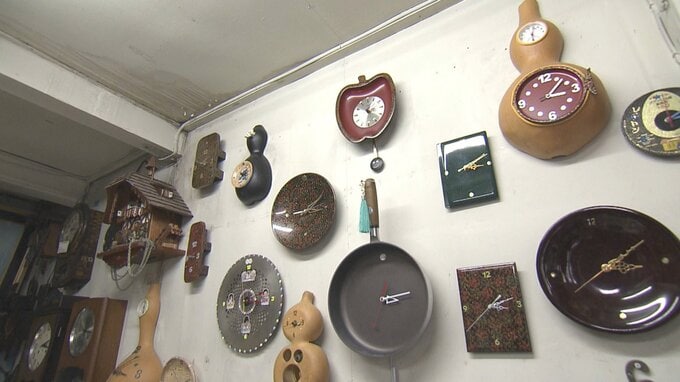 以来舘山さんは、あらゆるものを時計に作り変えてきました。廃品から思い出の品に至るまでその数は50点ほどにものぼります。