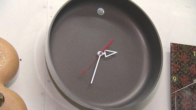 ※舘山雅夫さん「これは2年半ぐらい前だな。ちょうどお袋がなくなった後片付けをしていたら新品のフライパンが出てきて。ああ、これは面白いなと思って」「お客さん、笑って見ていくよ」