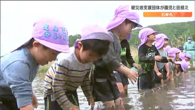 東日本大震災の後、被災地の支援を続けている兵庫県の一般社団法人が16日、宮城県石巻市で、地元の幼稚園児とともに田植えを行ないました。復興支援を続けているのは、一般社団法人「神戸国際支援機構」です。16日…
