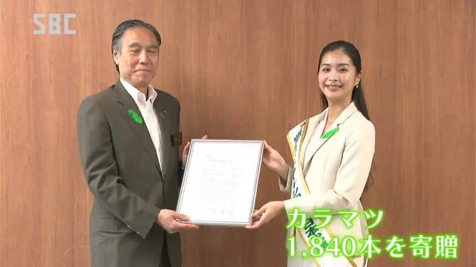 緑が豊かな県づくりに役立てて欲しいと、長野市の自動車販売会社が県にカラマツの苗木を贈りました。