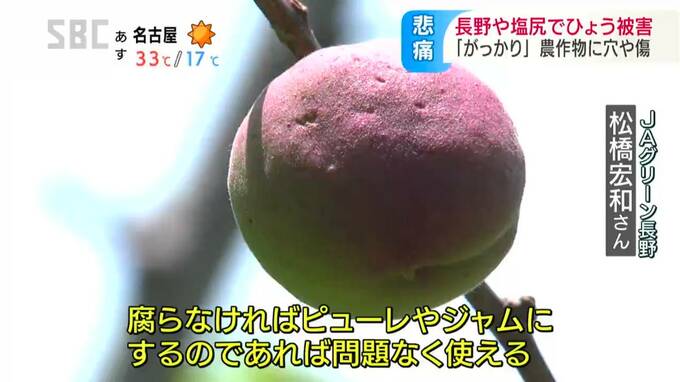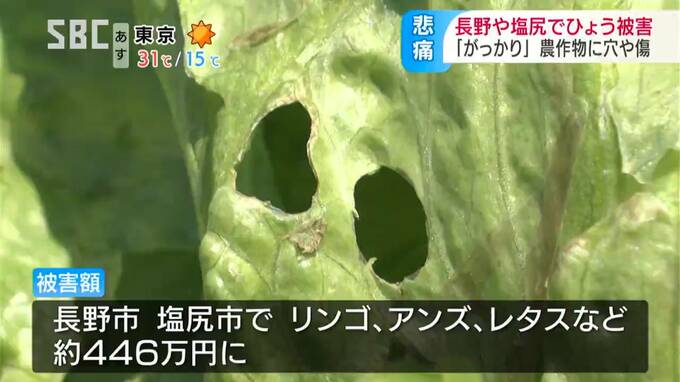 15日午後、長野市や塩尻市など県内の広い範囲で降った「ひょう」により、アンズやレタスなどに穴が開いたり傷がついたりといった被害が確認されました。