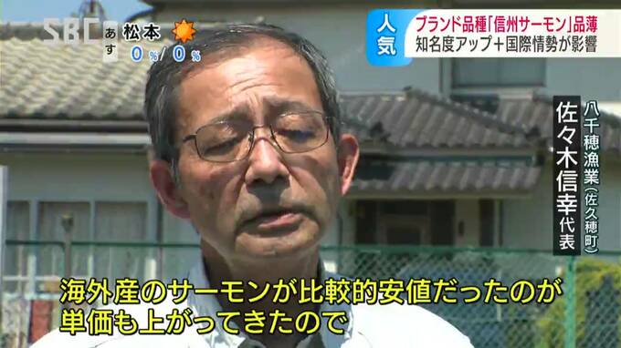 「やはり海外産のサーモンが比較的安かったのが、単価も上がってきましたんで、信州サーモンなんかと比べても値段の差がなくなったということで信州サーモンを使っていただける形になったと思う」