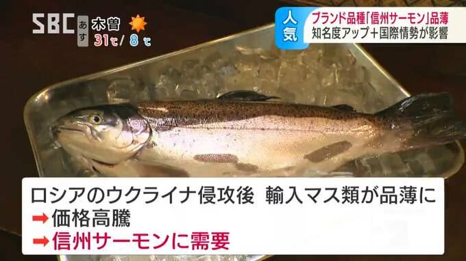 ロシアのウクライナ侵攻後、輸入のマス類が品薄となって価格が高騰し、高級魚の信州サーモンに需要が流れているのです。