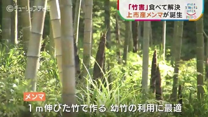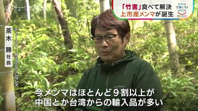 茶木 勝 社長:「今メンマって、ほとんど、9割以上が中国とか台湾からの輸入品が多くて、なかなか国産の物がないので。この孟宗竹を何とかおいしく食べられないかということで、たどり着いた。やってみたことがなかったという実態だと思います。いろんな食べ方があったと思うけど、産業になるまで、突き詰めて加工品にするというところまでいかなかったんだと思います」