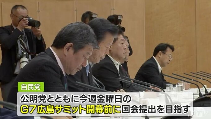 自民党は公明党とともに、19日金曜日のG7広島サミット開幕前に国会への提出を目指します。