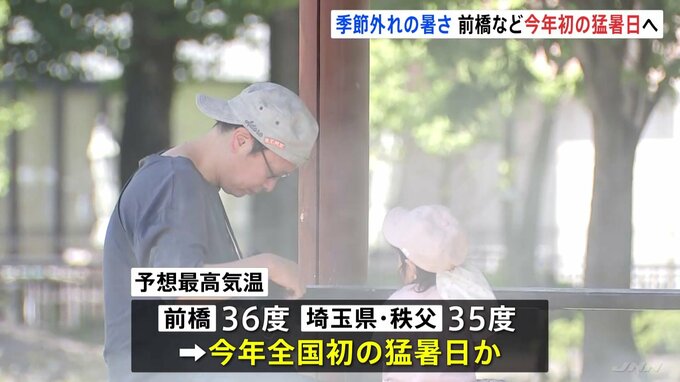 季節外れの暑さです。きょうは関東から九州にかけて、すでに気温が30度を超える真夏日となっています。前橋では予想最高気温が36度と、今年、全国で初めての猛暑日となる見込みです。気象庁によりますと、きょうの…
